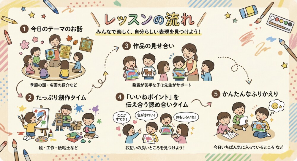 「その発想、おもしろいね」「その色づかい、あなたらしいね」と声をかけてもらえる場面がたくさんあります。