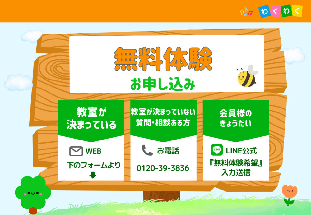 ↑ 選べるおためしキャンペーン:お申し込みはこちらから↓ 無料体験(通常):お申し込みは下記フォームから
