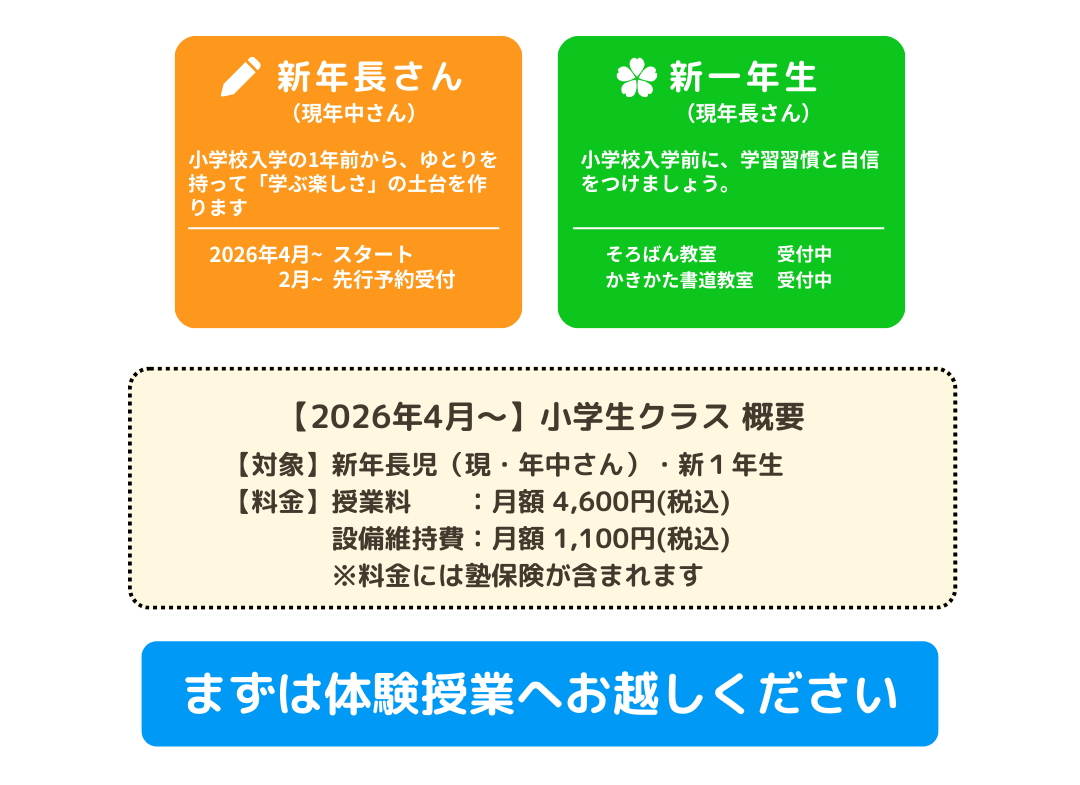 そろばん/かきかた書道 無料体験お申込み