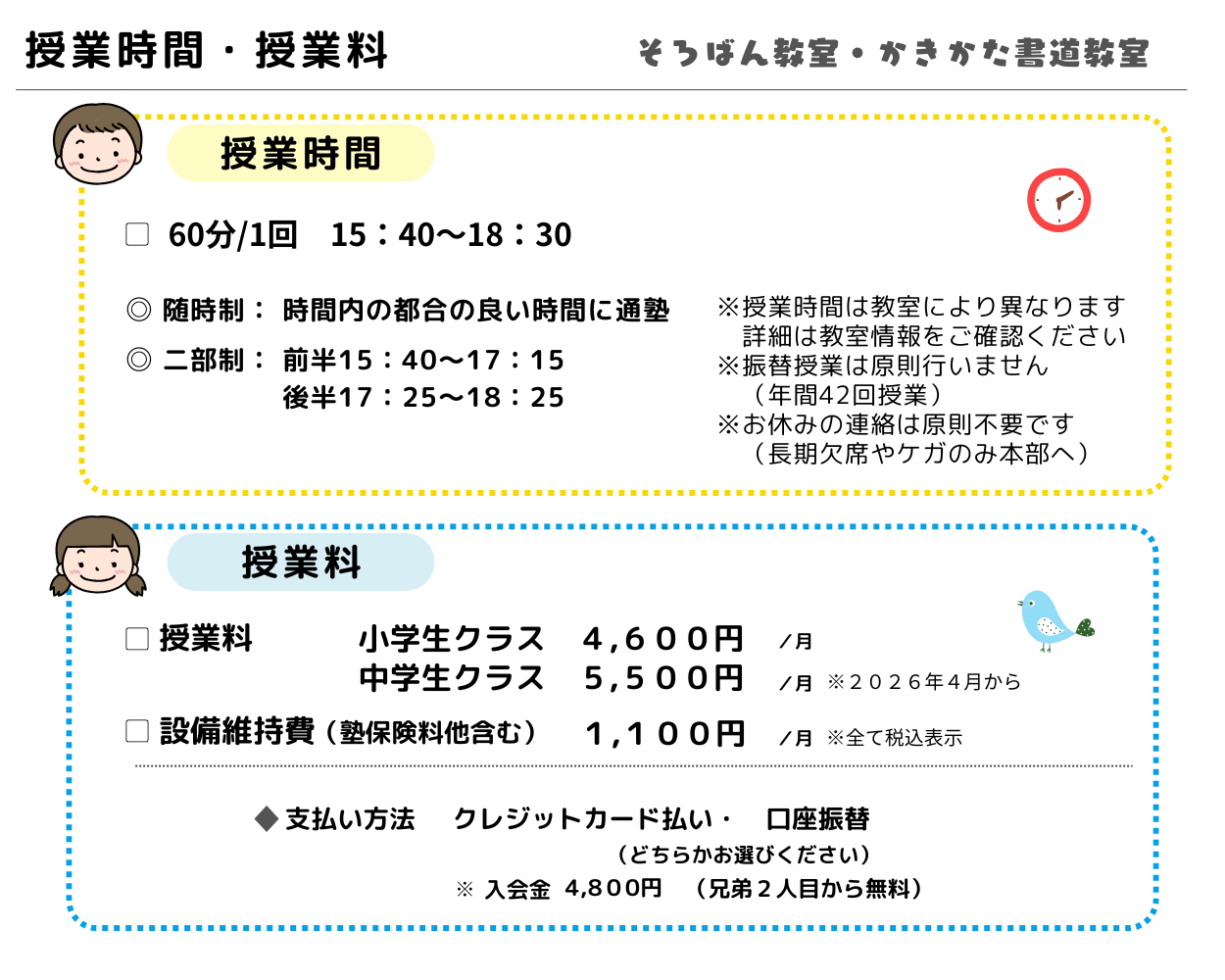 ※未就学児で筆記用具をお持ちでない方は教室で準備いたします。
